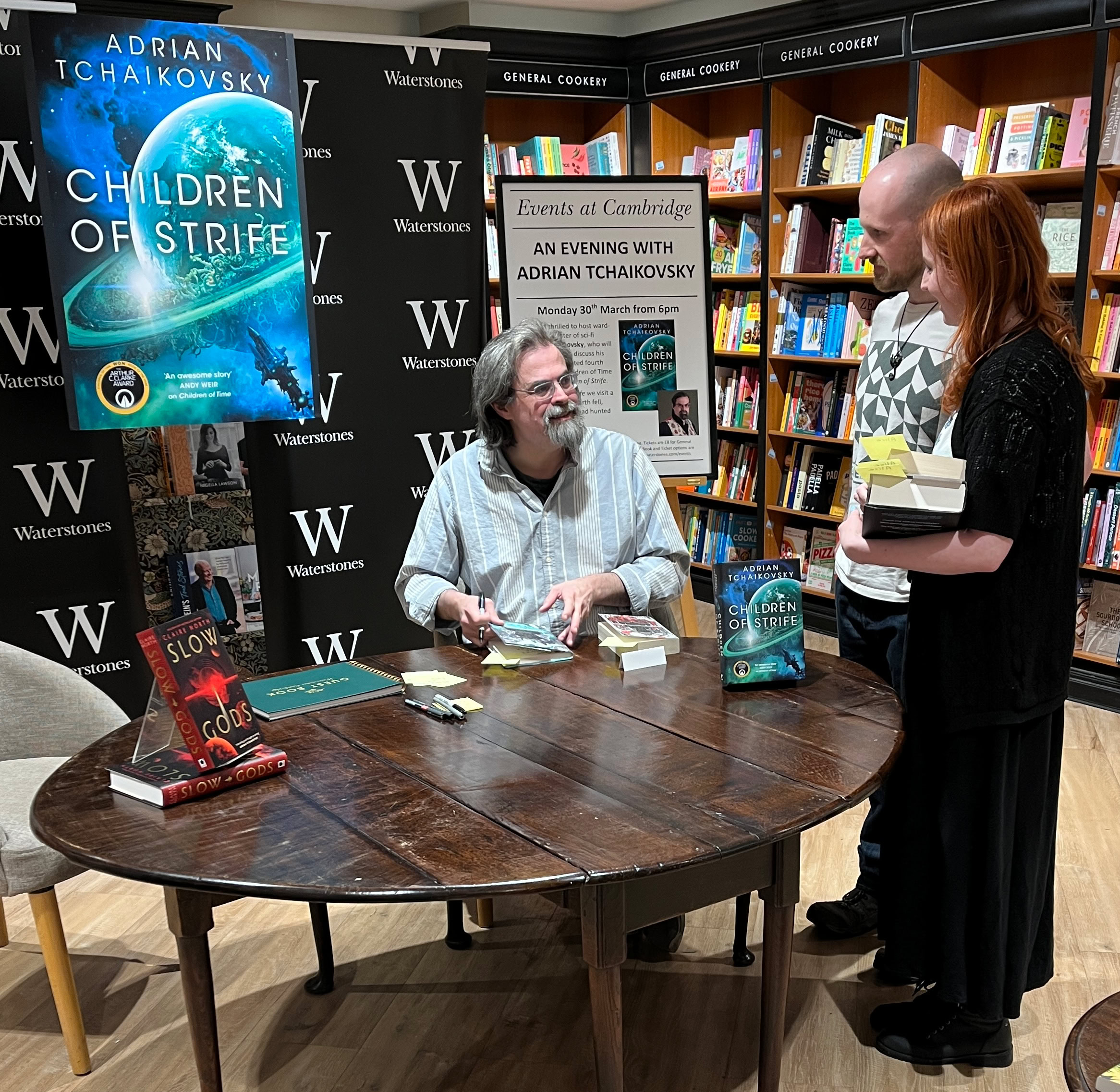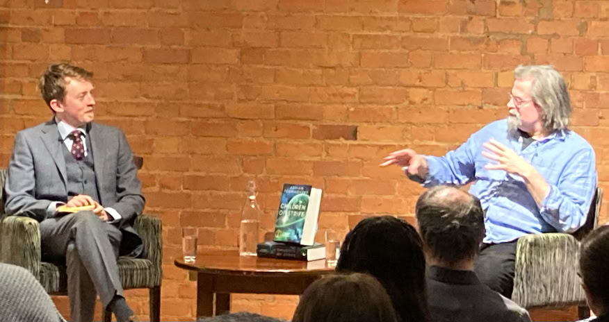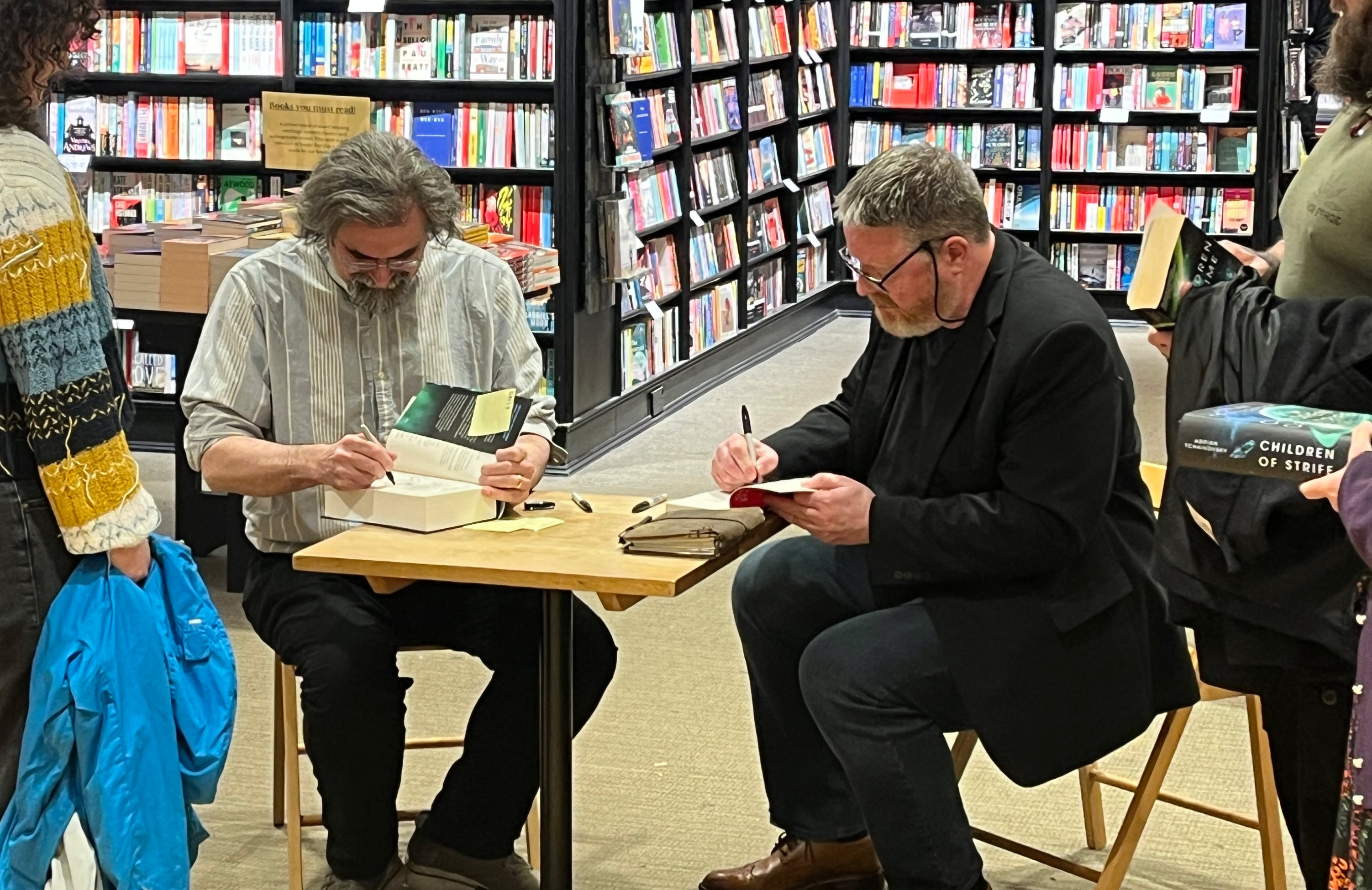 There was a fantastic turnout for Adrian's evening at Waterstones in Tottenham Court Road, London where Adrian gave a reading from Children of Strife, was interviewed by Felix Mosse and took audience questions. There were also opportunities for signing and it was a joy to see books from all over the world as well as a full set in Hungarian! Thank you to everyone who came.