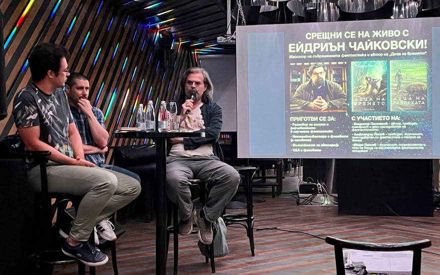 On the evening of Monday 8 September 2025, Adrian appeared at Club Gramophone in the centre of Sofia, Bulgaria in discussion with author and academic, Vladimir Poleganov, and science fiction academic and researcher, Alexander Popov hosted by Joro Penchev.