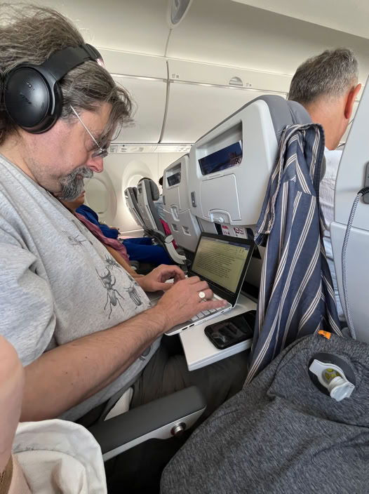 Very tired but still writing, even cramped in the plane on the way home.
