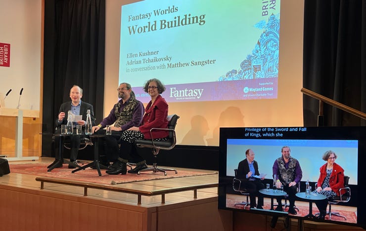 Adrian Tchaikovsky and Ellen Datlow enjoyed an hour in conversation with Matthew Sangster on WorldBuilding in Fantasy last Saturday 9 December 2023 from 17:00 at the British Library’s Theatre.